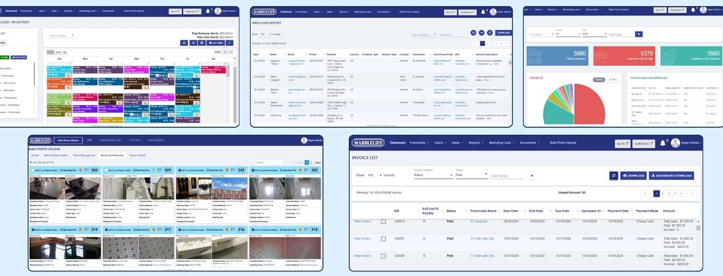 Implementing the MARBLELIFE Information Management System has transformed the company’s operations. Franchisees can now manage leads more effectively, streamline workflows, and focus on providing high-quality services rather than getting bogged down by administrative tasks. The system’s sales and marketing automation tools have enabled franchises to boost revenue through improved analysis and targeted marketing efforts. Technicians benefit from real-time job tracking, ensuring they deliver the right services with minimal delays.